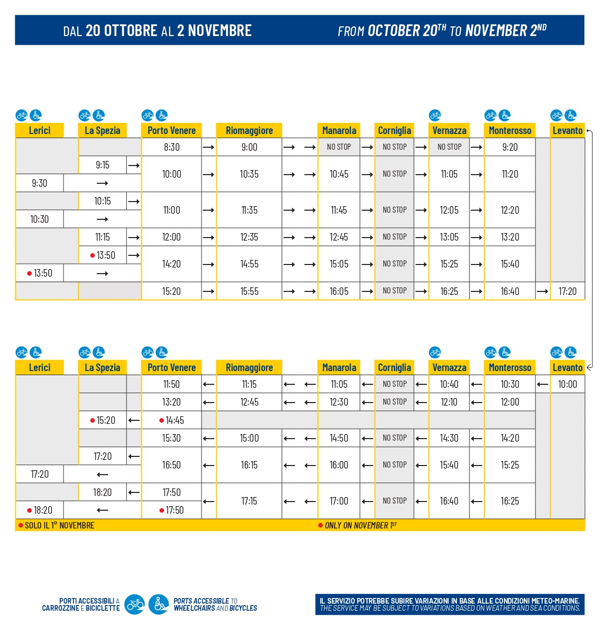 Orario battelli dal 20 ottobre al 2 novembre 2025